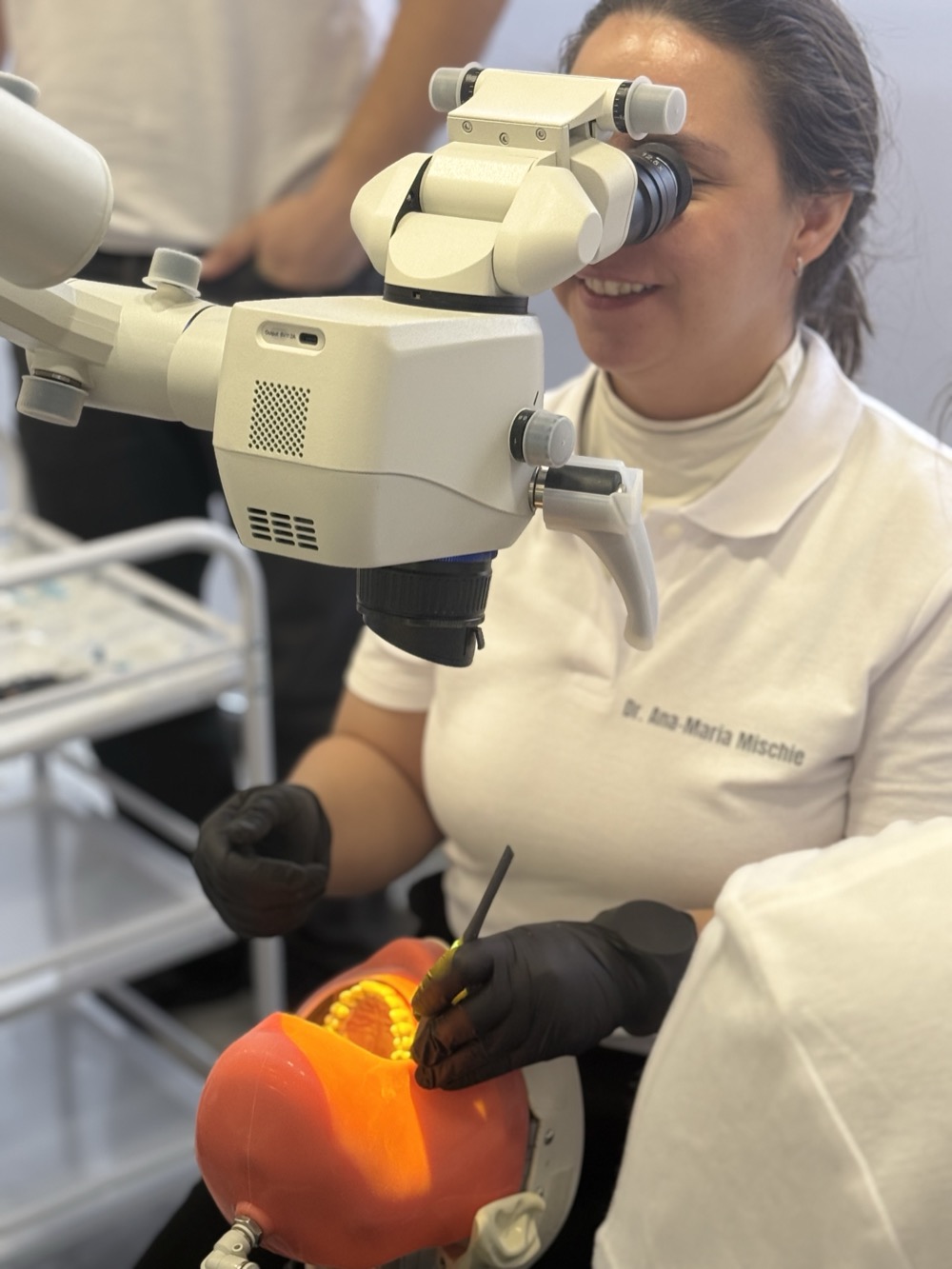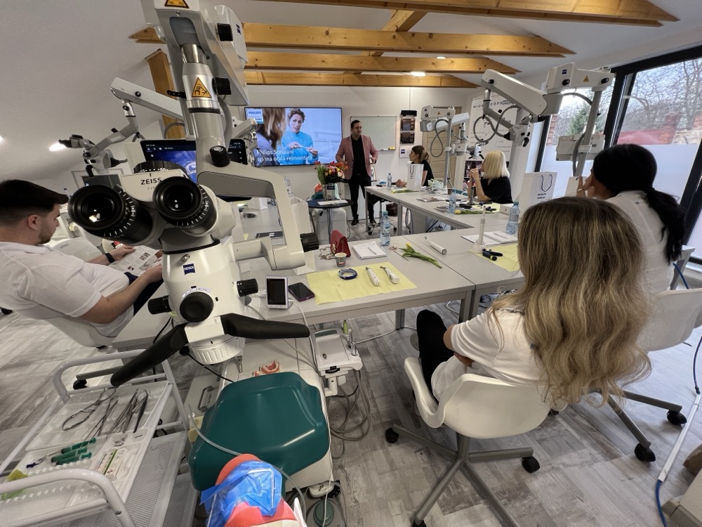 Dr. Stefan Jitaru, coodonatorul si lectorul principal al acestui curs: “Acest program educational este adresat in principal medicilor stomatologi care se specializeza in endodontie si care utilizeaza de scurt timp sau isi doresc sa foloseasca in viitor magnificatia in practica lor clinica. Designul cursului este axat pe exercitii si hands-on-uri introduse de scurte prezentari teoretice, fiecare participant lucrand in echipa cu un coleg (simuland echipa medic-asistent) la microscop Zumax si simulator de unit care dispune de arcade dentare, terminale de unit (turbina, piesa contra-unghi, spray) astfel incat experienta de lucru sa fie cat mai apropiata de cea din cabinet.”