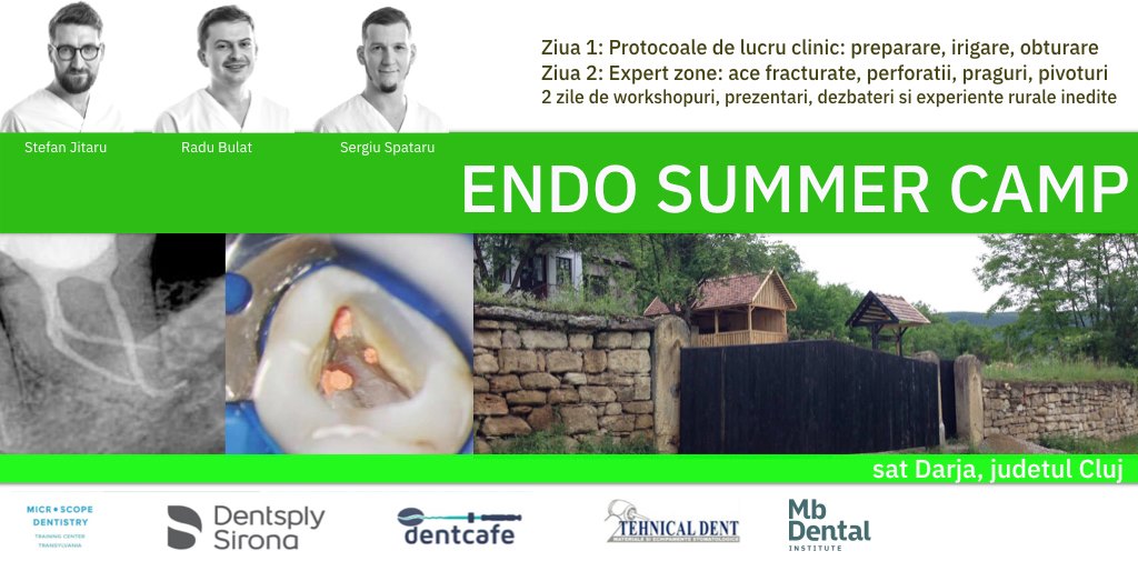ENDO Camp este o tabara de vara de endodontie, adresata studentilor stomatologi dar suntem onorati sa avem alaturi si medici incepatori sau cu experienta. Tabara are loc la Darja, satul in care s-a nascut profesorul Iuliu Hatieganu, intemeietorul invatamandului medical clujean si este coordonata de dr. Stefan Jitaru, medic dentist specializat in endodontie.